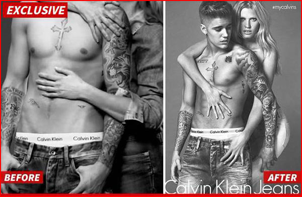 Одной из первых о злоупотреблении Photoshop в обработке снимков высказалась жена Марка Уолберга Риа Дюрэм. Она подчеркнула, что ее супруг 20 лет назад выглядел отлично без всяких компьютерных программ, чего не скажешь о Бибере.